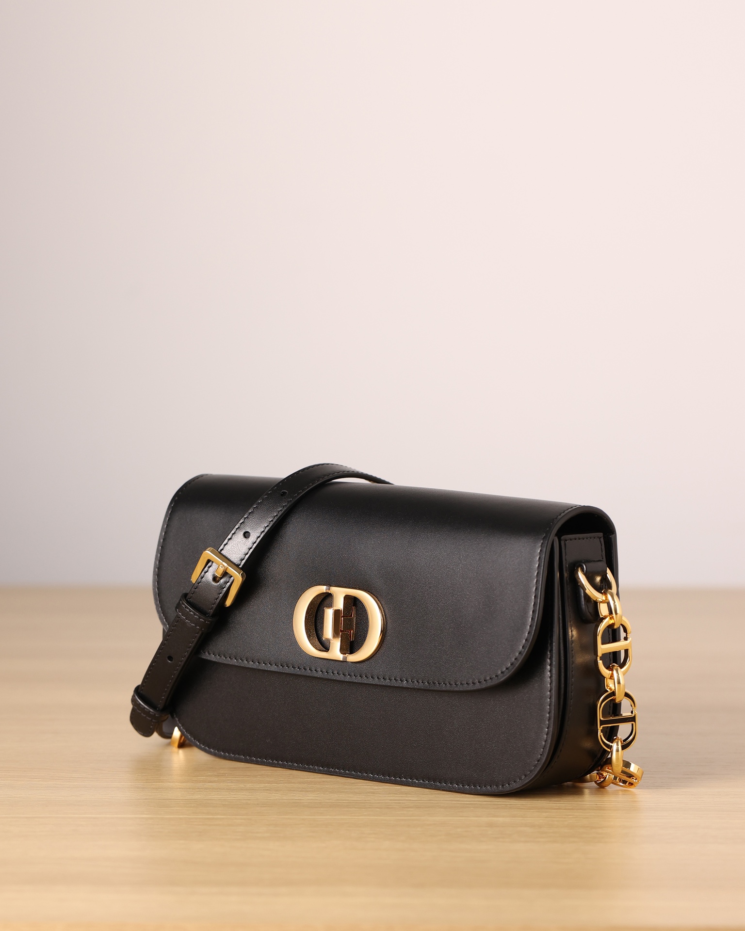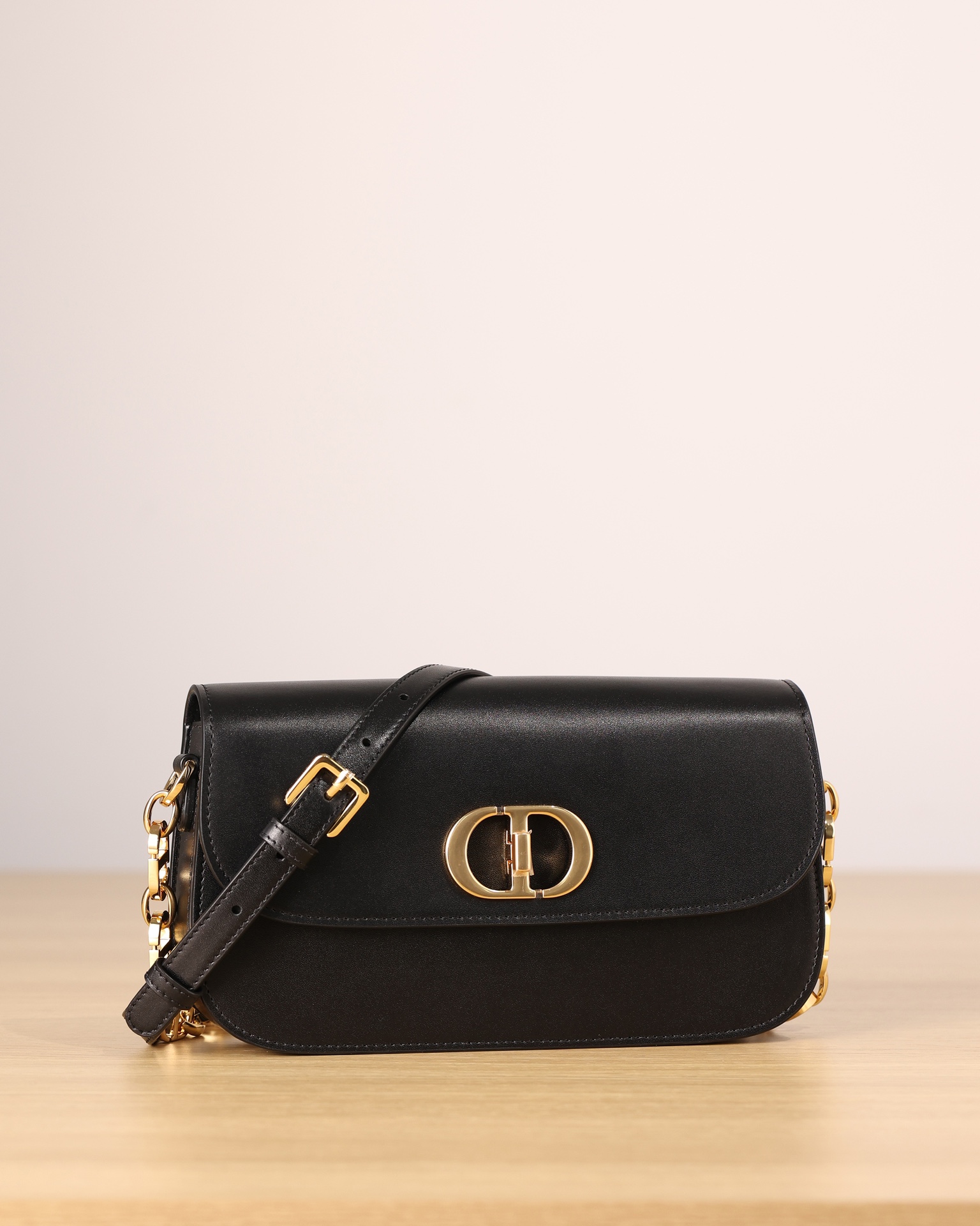 The 30 Montaigne Avenue bag enhances the hallmark line with a timeless and elegant style. Crafted in black box calfskin, the rounded flap with delicate curves is punctuated by an antique gold-finish metal CD clasp inspired by the seal of a Christian Dior perfume bottle. The design is completed by other details, like the 30 Montaigne signature embossed on the back and the signature chain alternating gold-finish metal and tonal enamel links that match the leather. The gusseted bag features a spacious and refined silhouette that can be carried by hand, worn over the shoulder or crossbody.