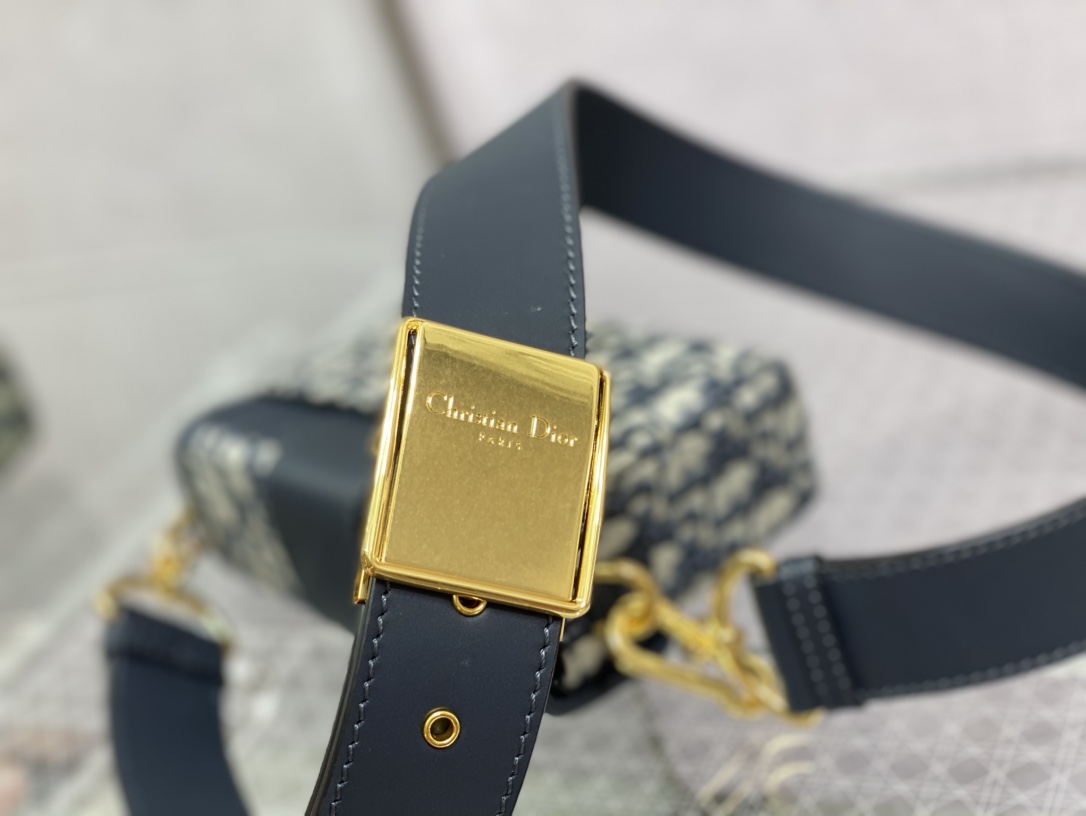 Large, removable and adjustable leather shoulder strap with 'Christian Dior' military-inspired buckle