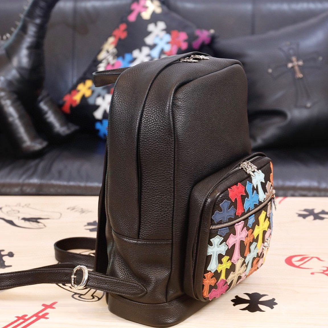 CH NIGO Black And White Patterned Leather Backpack Bag #nigo7413