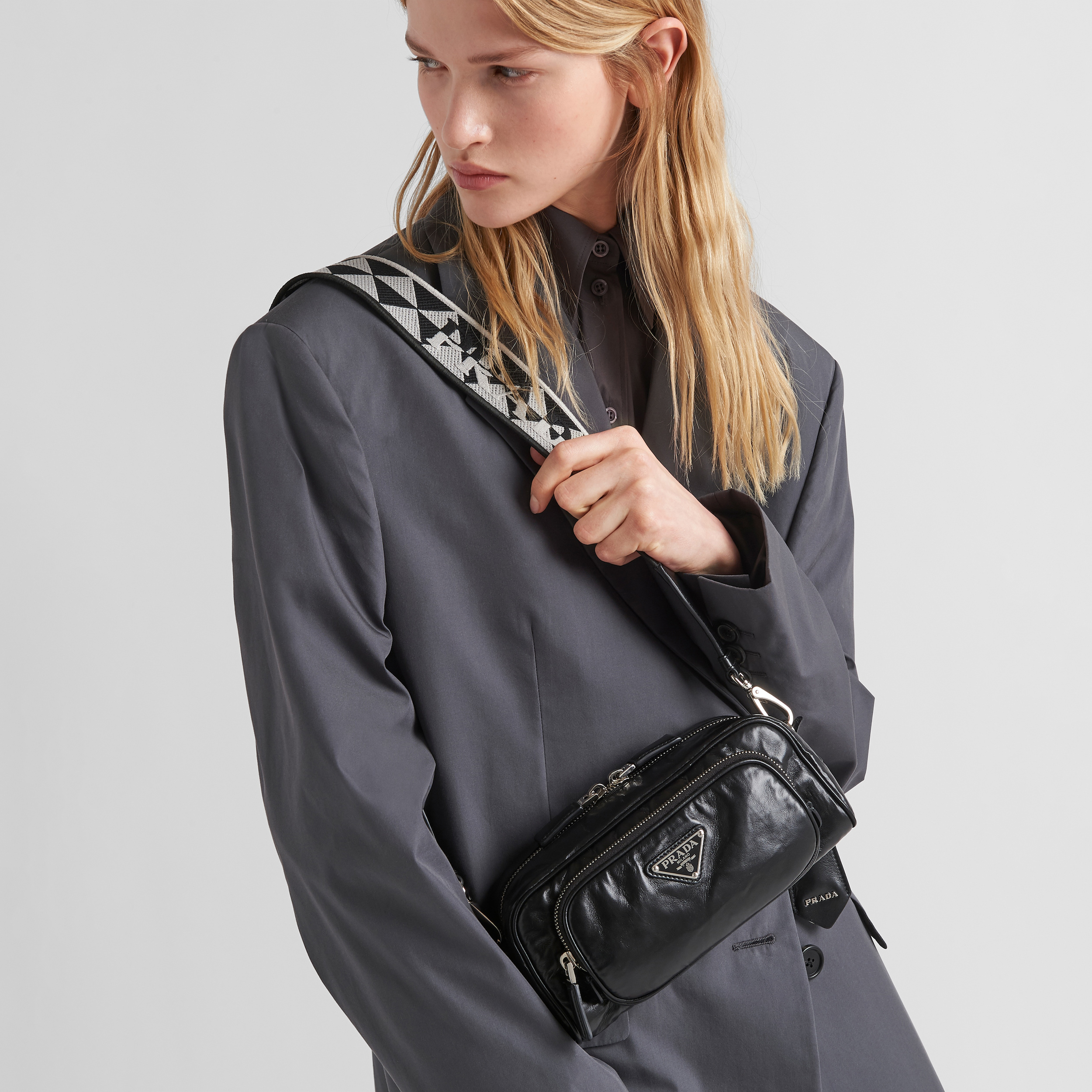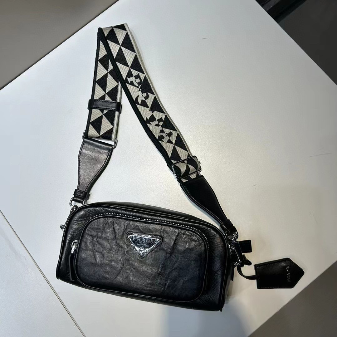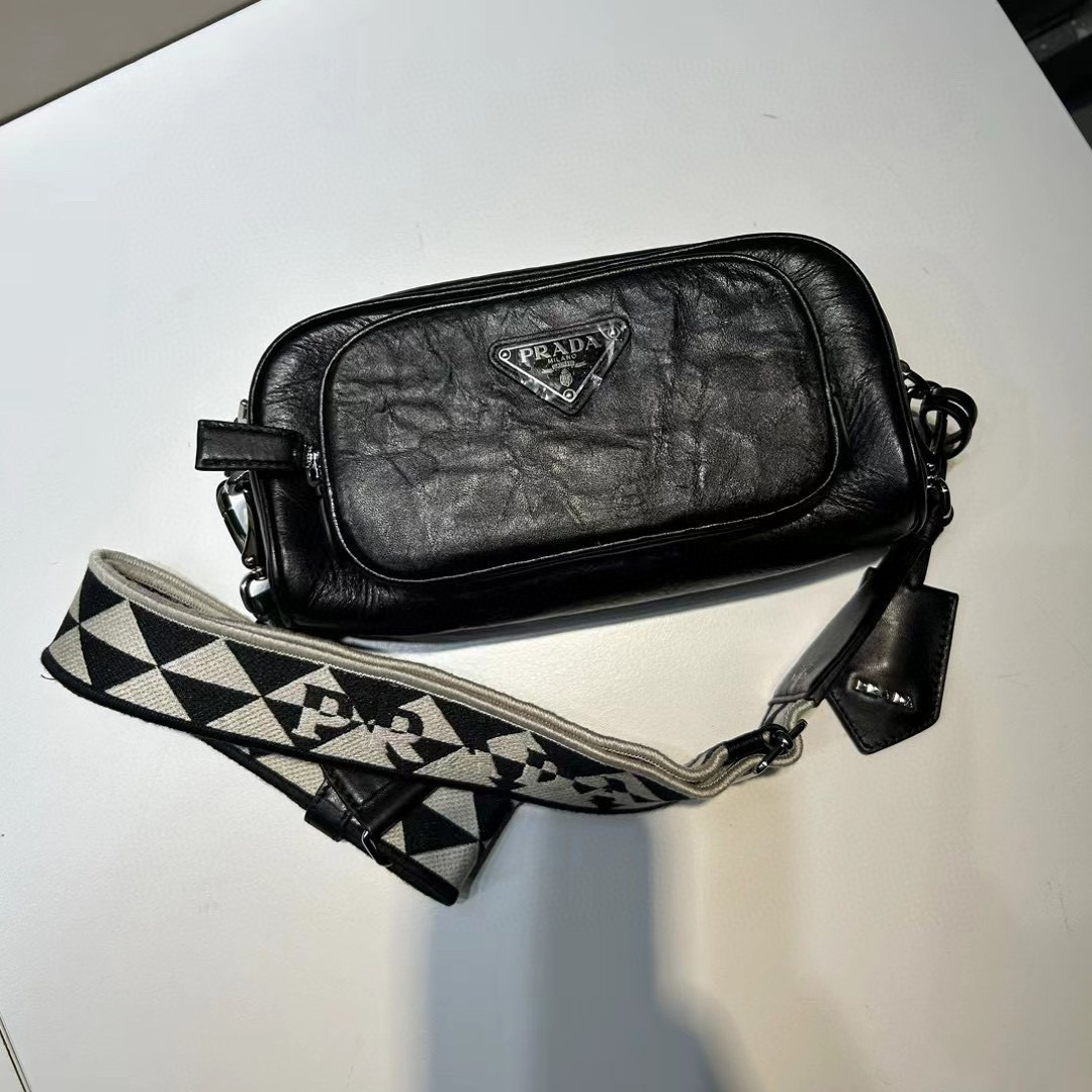 Prada NIGO Black Leather Long Shoulder Strap Crossbody Bag #nigo57423