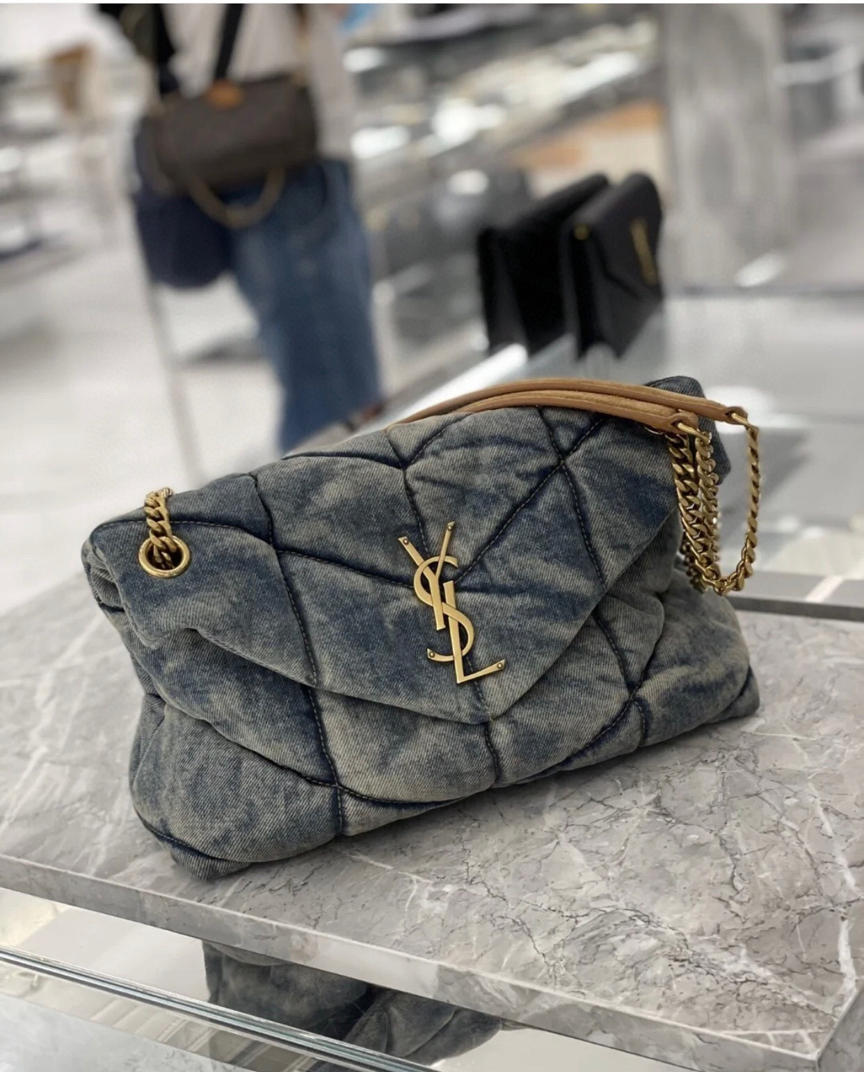 SAINT LAURENT Denim Bag SLP loulou puffer large Spring limited denim